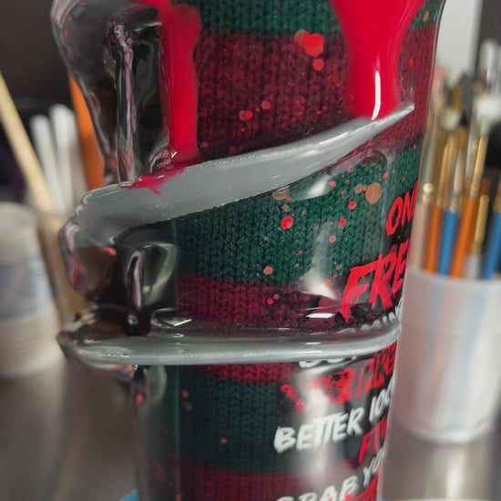 20oz Tumbler customized with Hand painted 3d props, custom drip and custom decorated lid. Fully epoxy covered. This is a 1 week process to complete each cup.